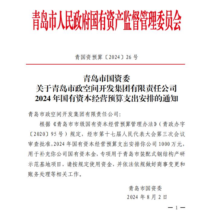 集團(tuán)裝配式鋼結(jié)構(gòu)產(chǎn)研示范基地項(xiàng)目獲國有資本經(jīng)營預(yù)算支出專項(xiàng)資金獎補(bǔ)