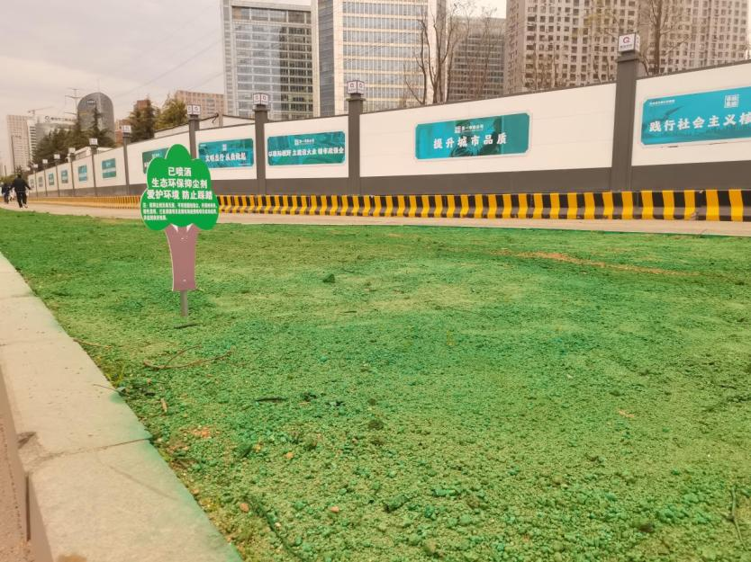來(lái)源: 更新時(shí)間:2022-05-01“已噴灑生態(tài)環(huán)保抑塵劑,愛(ài)護(hù)環(huán)境,防止踩踏”,近日,一棵棵“小樹(shù)”立在銀海立交項(xiàng)目工程現(xiàn)場(chǎng),大片綠色“草坪”覆蓋了原有人行道綠籬帶。