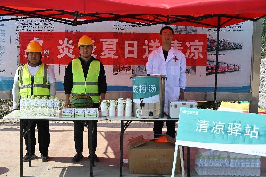 防暑降溫是一項(xiàng)季節(jié)性很強(qiáng)的勞動(dòng)保護(hù)工作,直接關(guān)系到職工身體健康和企業(yè)生產(chǎn)安全。為此,項(xiàng)目部采取錯(cuò)峰施工、分批作業(yè)的做法,減少施工人員的戶外勞動(dòng)時(shí)間;同時(shí)在“清涼驛站”常備純凈水、藿香正氣液以及綠豆湯、酸梅湯、西瓜等解暑“利器”,為施工人員提供保障。