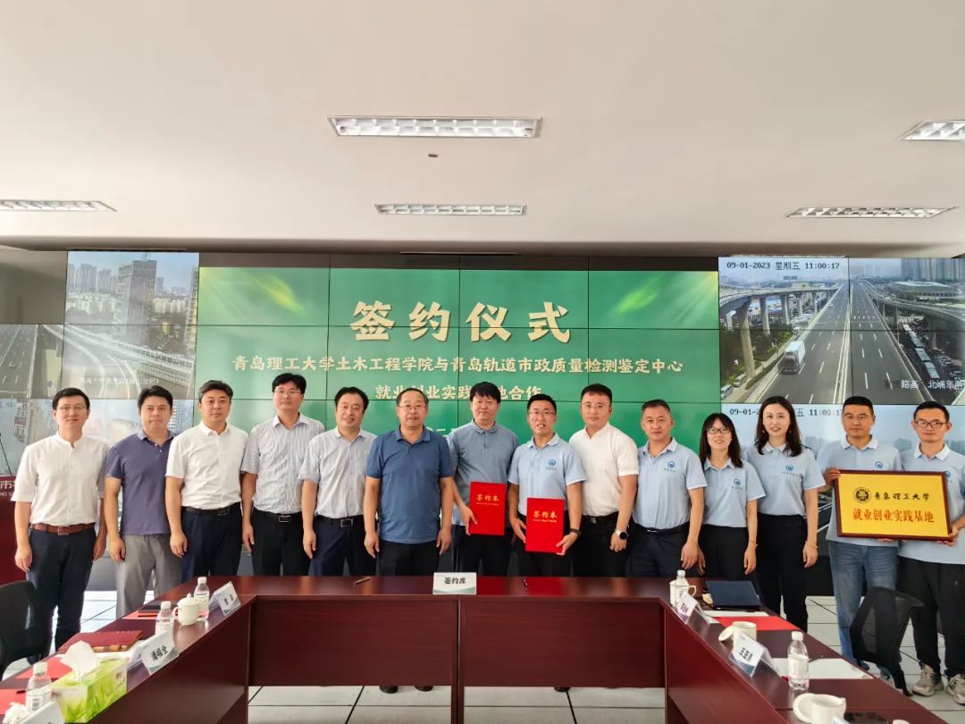 9月1日,青島理工大學土木工程學院與青島軌道市政檢測中心就業(yè)創(chuàng)業(yè)實踐基地合作協(xié)議簽約儀式在城市物業(yè)公司會議室舉行,理工大學土木工程學院黨委書記曲成平,院長侯東帥,副書記邵先鋒,青島市政空間開發(fā)集團工程管理部部長陳際洲,城市物業(yè)公司紀檢委員、工會主席趙鋒,副總經(jīng)理曲健等出席了簽約儀式。理工大學土木工程學院以及城市物業(yè)公司綜合管理部、業(yè)務管理部、檢測中心相關負責人員參加活動。