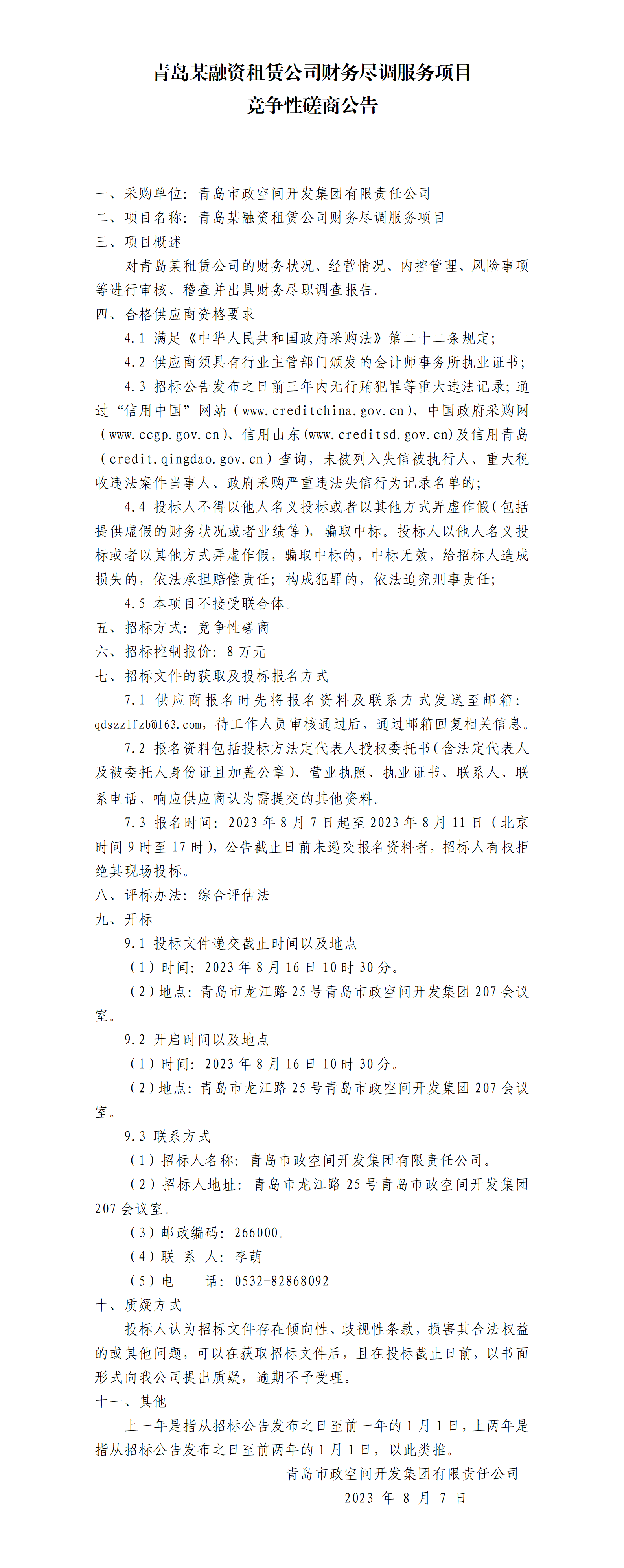 青島某融資租賃公司財(cái)務(wù)盡調(diào)服務(wù)項(xiàng)目 ? 2023-08-07 09:30:17 3185 打印 A- A+ 返回列表 上一篇: 中央商務(wù)區(qū)停車樓價(jià)值 下一篇: 財(cái)務(wù)決算審計(jì)項(xiàng)目中標(biāo)